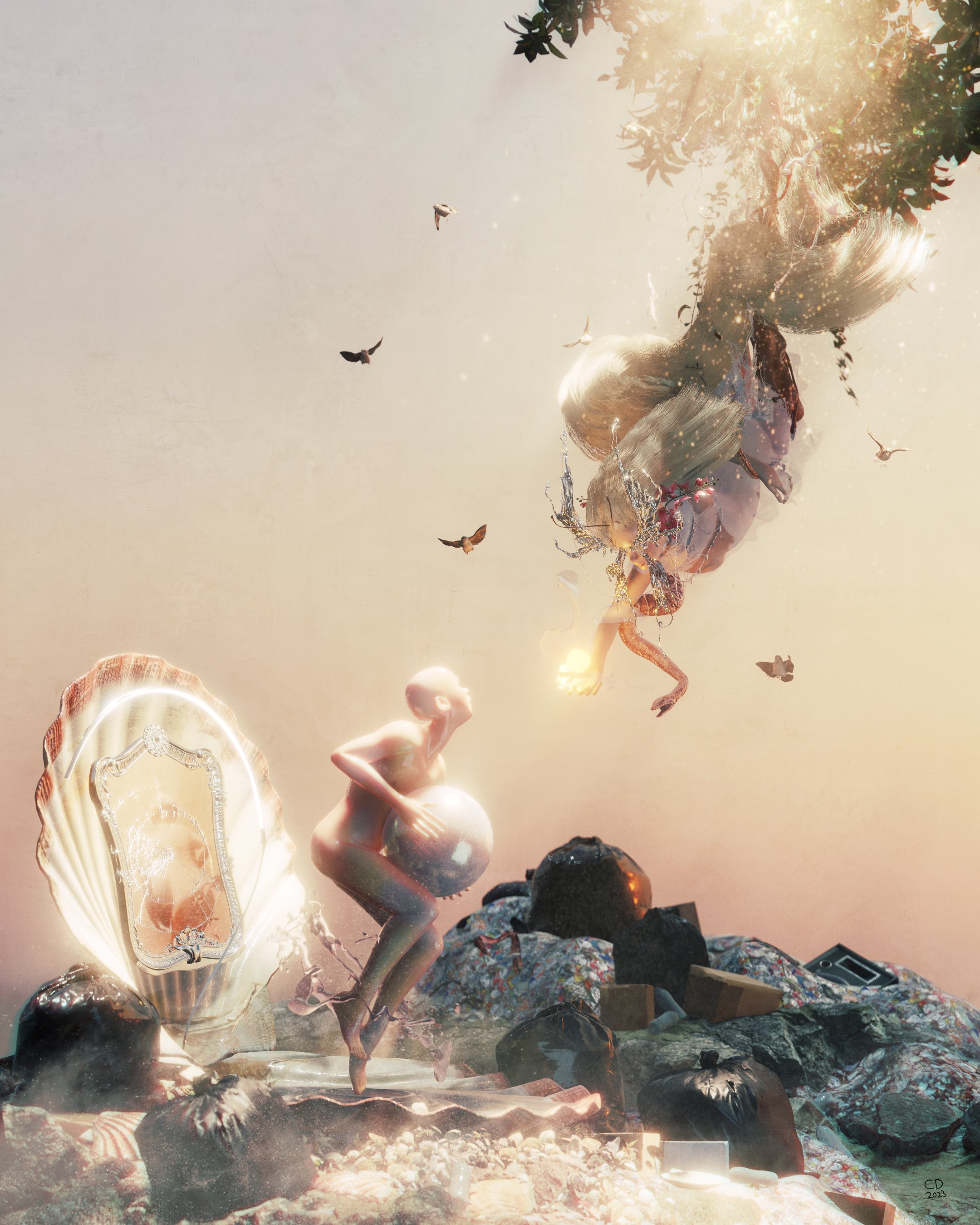 Both pieces contain a mixture of manually-crafted models and 3D assets sourced online.